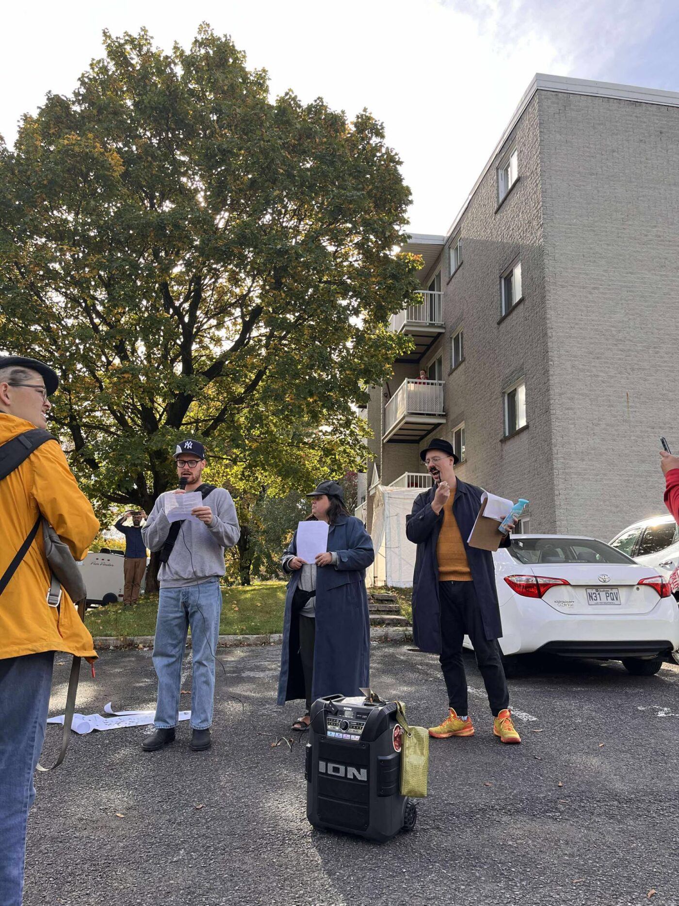 Ce matin, devant le 570 rue du Roi dans Saint-Roch, deux détectives citoyens embarquaient avec une cinquantaine participants·es dans un autobus pour une tournée explosive de trois heures travers les « scènes de crimes » de l’immobilier de la ville de Québec. Chaque arrêt révélait les preuves accablantes des abus systémiques subis par les locataires.
