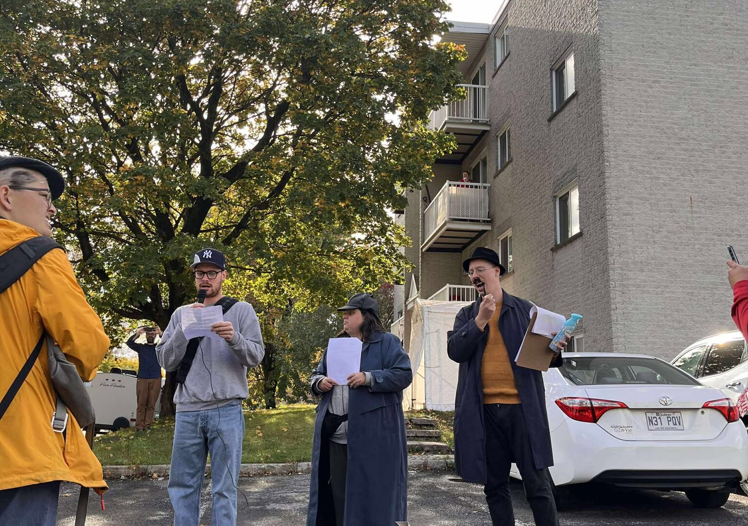 Ce matin, devant le 570 rue du Roi dans Saint-Roch, deux détectives citoyens embarquaient avec une cinquantaine participants·es dans un autobus pour une tournée explosive de trois heures travers les « scènes de crimes » de l’immobilier de la ville de Québec. Chaque arrêt révélait les preuves accablantes des abus systémiques subis par les locataires.